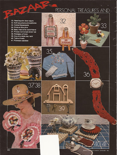 Ideas on pages from a September 1980 Better Homes and Gardens magazine I saved (years ago, as you can tell). I haven't heard of Bazaars in a long time. Do they still have them somewhere?